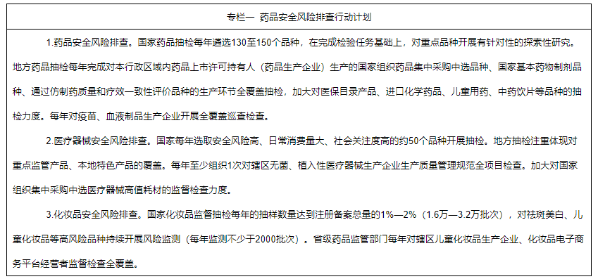 “十四五”期末,藥品監(jiān)管能力整體接近國際先進(jìn)水平,藥品安全保障水平持續(xù)提升,人民群眾對藥品質(zhì)量和安全更加滿意、更加放心。